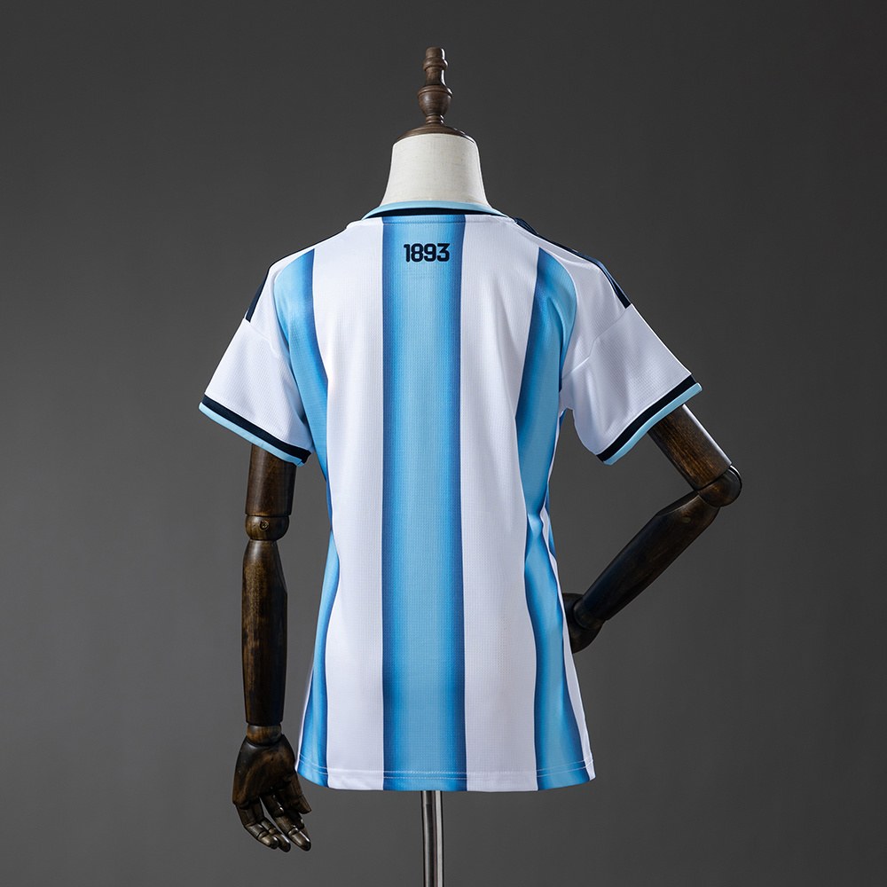 Den marineblå detaljeringen på skuldrene og ermene gir drakten et skarpt og kraftfullt uttrykk. Som den første drakten med Argentinas tredje stjerne, markerer den et nytt kapittel i landslagets stolte historie.