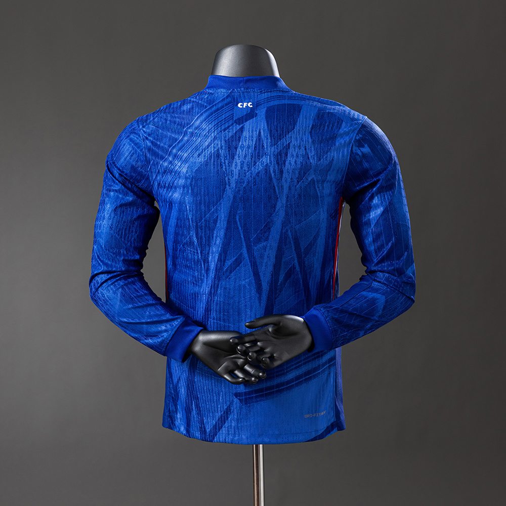 Den nye Chelsea 2025-26 hjemmedrakten bygger videre på klubbens ikoniske blå identitet, men med et langt mer moderne og kraftfullt uttrykk. Basen er klassisk royal blue, kombinert med hvite detaljer og små, skarpe innslag av rødt som gir trøyen en frisk kontrast uten å ta fokuset bort fra hovedfargen.