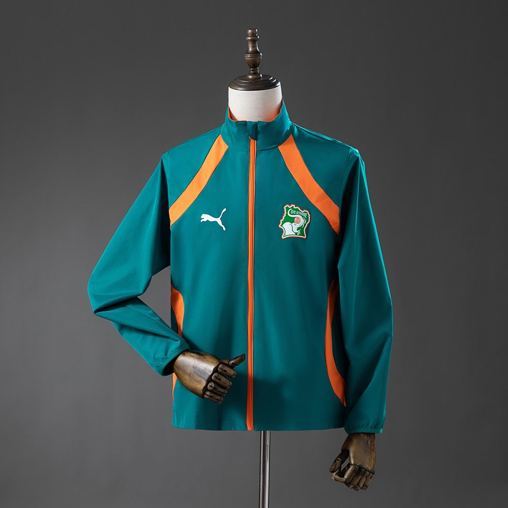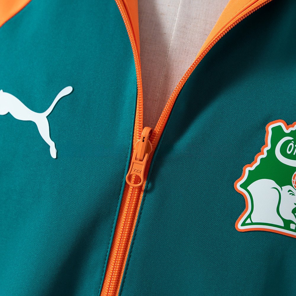 Designet er inspirert av Elfenbenskystens landslag og landets sterke fotballkultur. Den gjennomgående glidelåsen gjør jakken enkel å ta av og på, mens den lette og behagelige passformen gjør den godt egnet både før kamp, etter trening eller som en sporty jakke til hverdags.