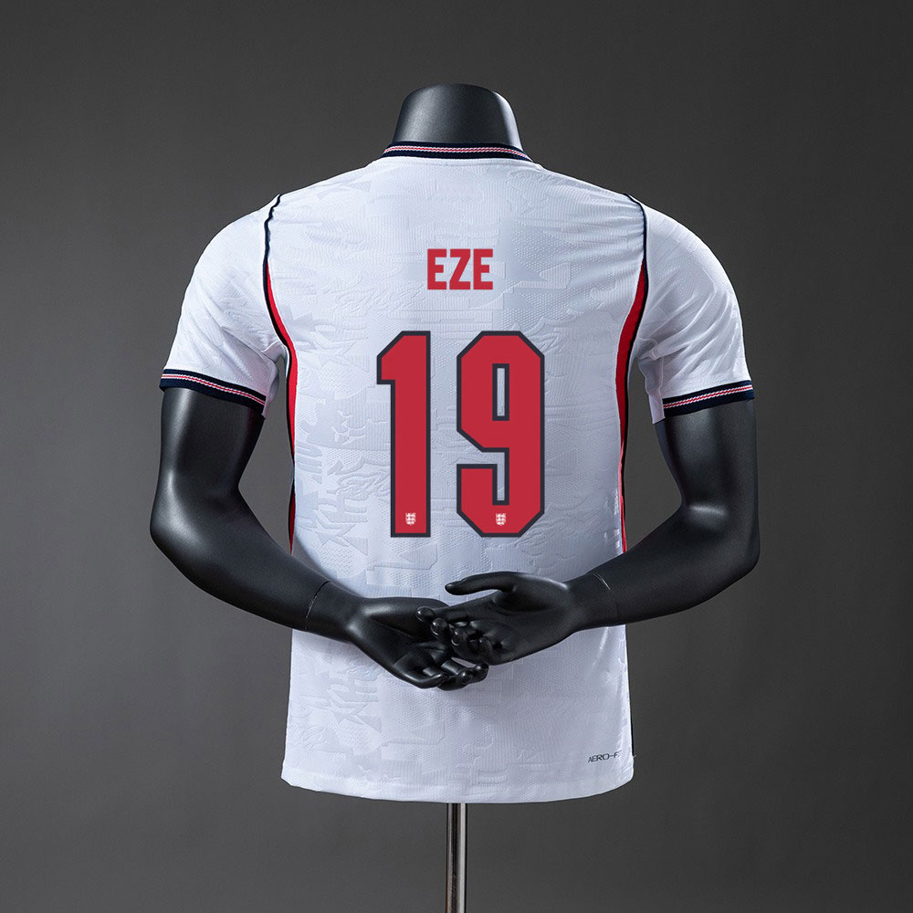 Denne modellen kommer med Eze 19 trykk inkludert, klar til bruk uten behov for tilpasning. Perfekt for fans som ønsker en unik England-drakt med en kreativ spillerprofil.
