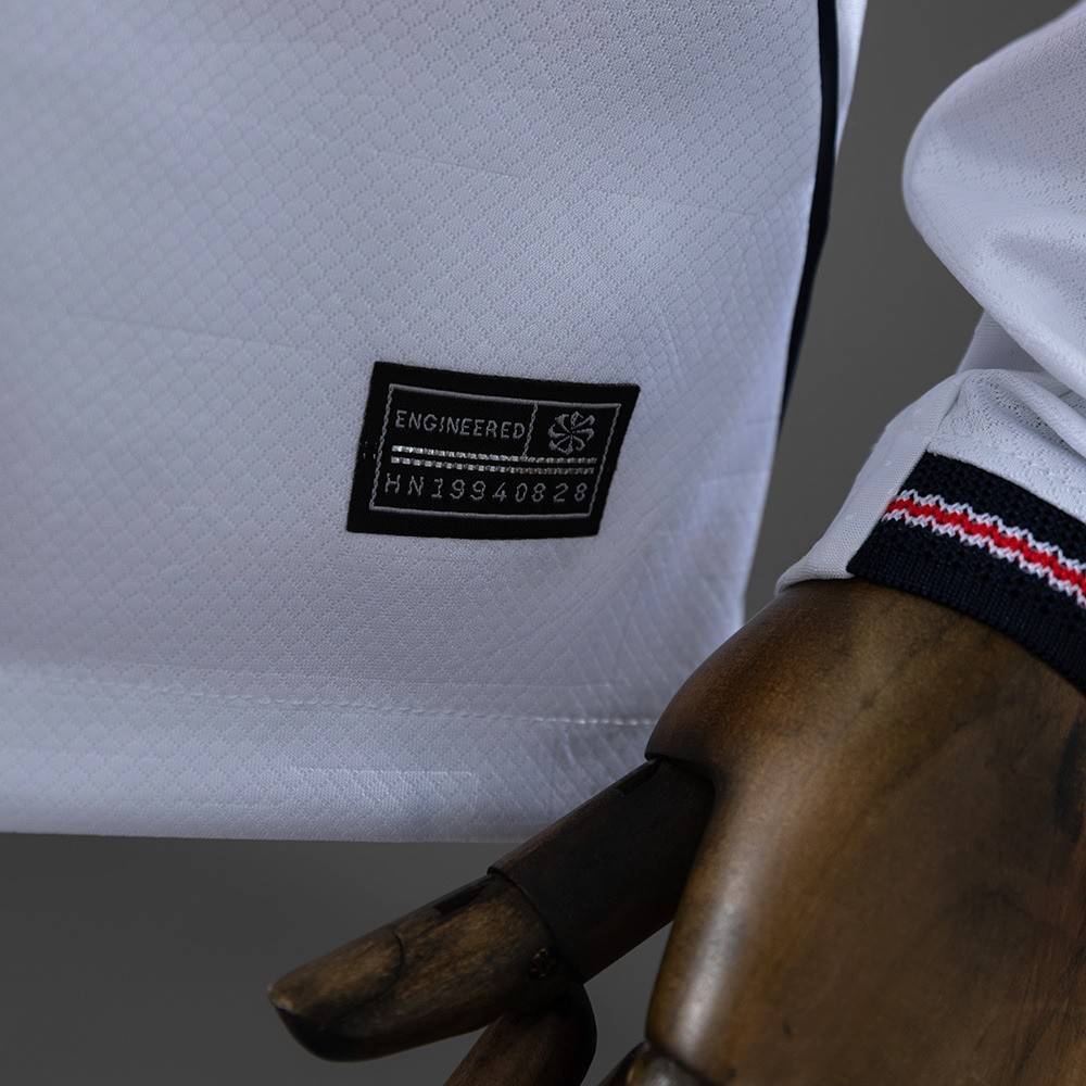 På innsiden av kragen finner du teksten “HAPPY AND GLORIOUS”, en hyllest til Englands fotballarv. Over klubbemblemet sitter en gullstjerne som markerer VM-triumfen i 1966 – en detalj som gir drakten ekstra historisk betydning.