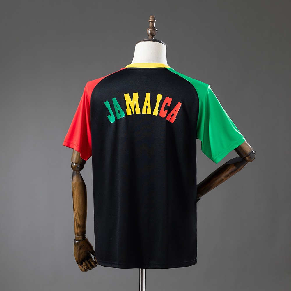 Kulturelle Symboler: Det skjermprintede Jamaica-emblemet på brystet viser din lojalitet til «Reggae Boyz», mens fargepaletten umiddelbart sender tankene til Bob Marleys udødelige budskap om samhold og frihet.