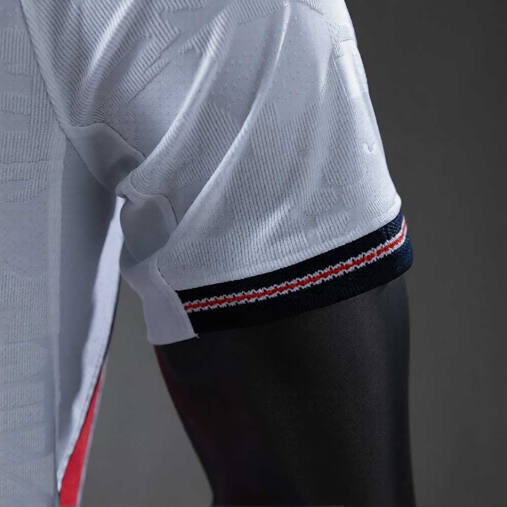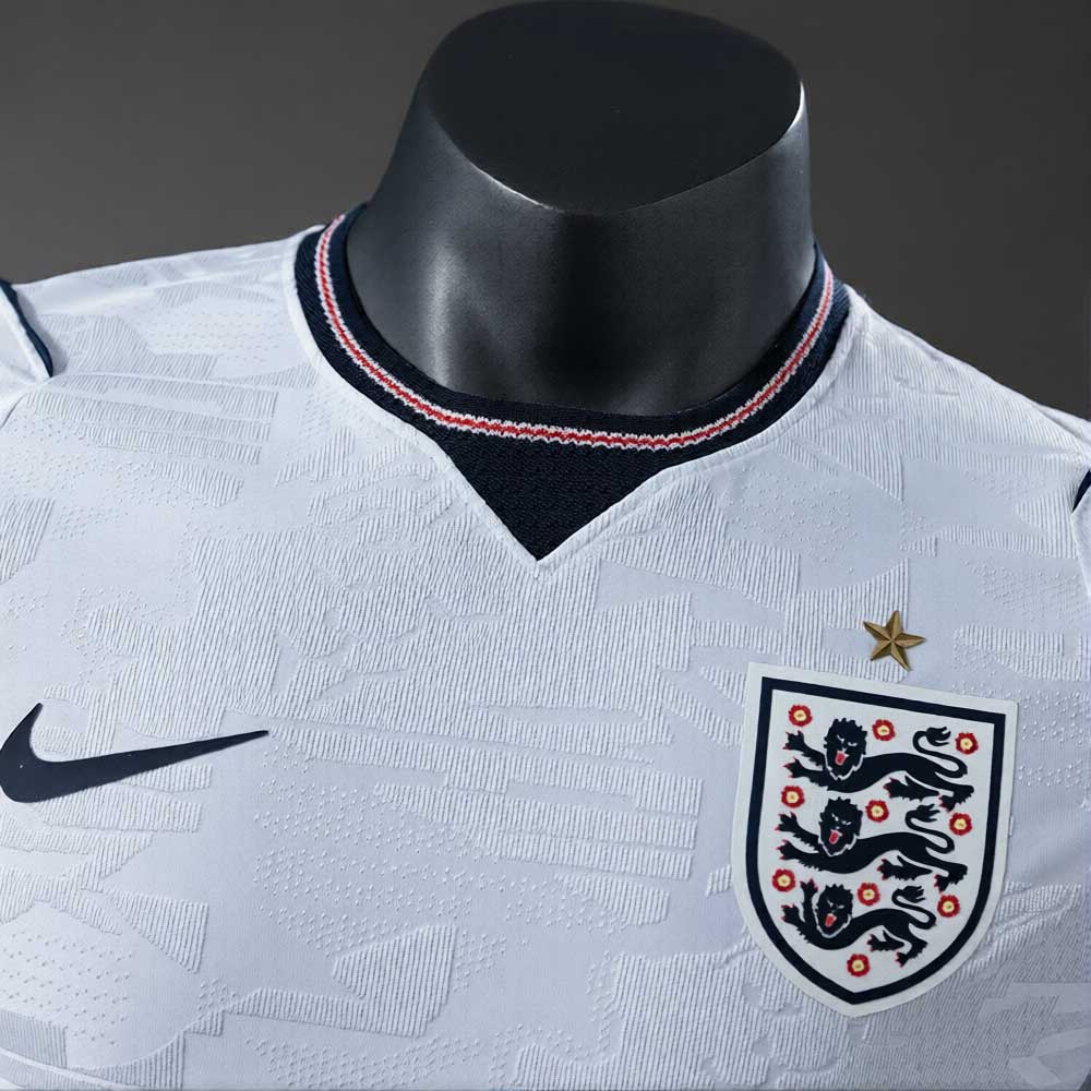 Drakten er laget i et lett og pustende materiale som gir god komfort både under kamp og til hverdagsbruk. Det subtile mønsteret i stoffet gjenspeiler Englands fotballtradisjon og gir et moderne preg.