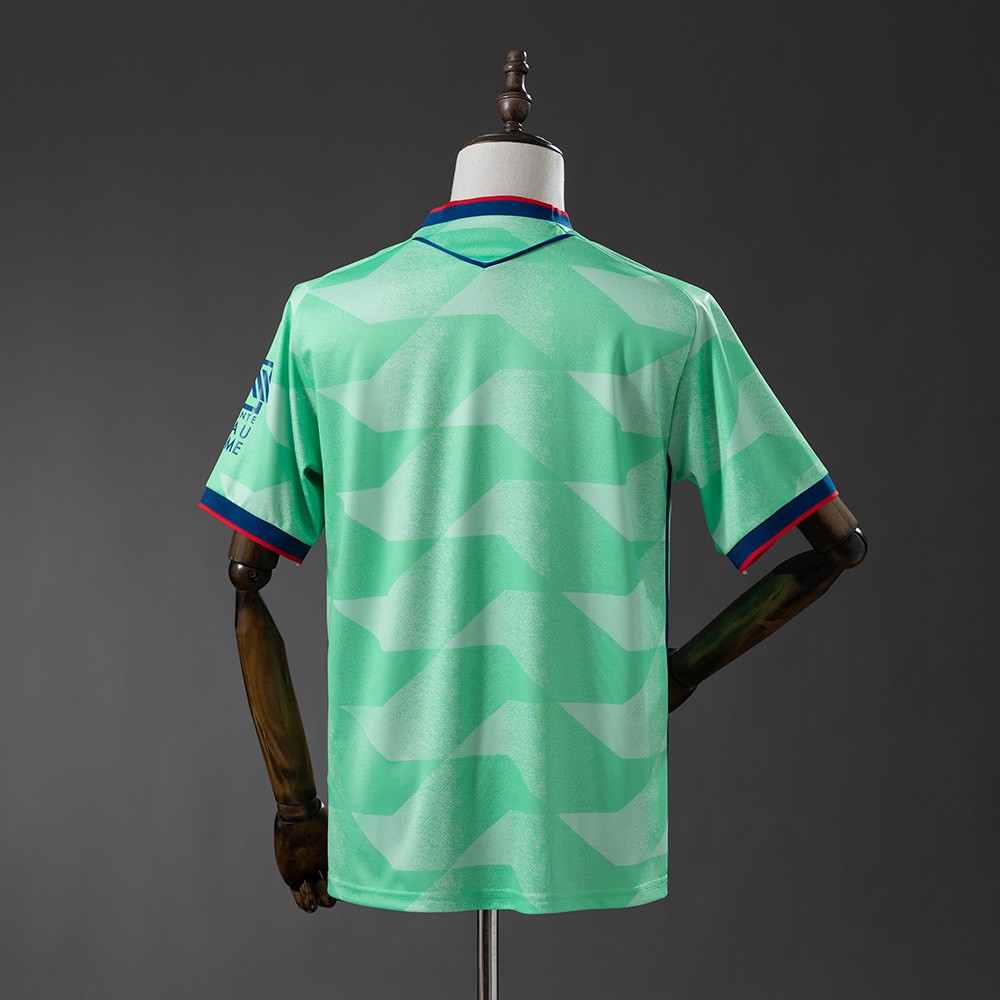 Levante 25/26 tredjedrakt skiller seg tydelig ut med et friskt og moderne uttrykk, samtidig som den er dypt forankret i lokal historie. Draktens markante mintgrønne base er en direkte hyllest til Huerta Valenciana – det historiske landbruksområdet som en gang omkranset Ciutat de València Stadium, og som mange supportere måtte krysse til fots på vei til kamp.