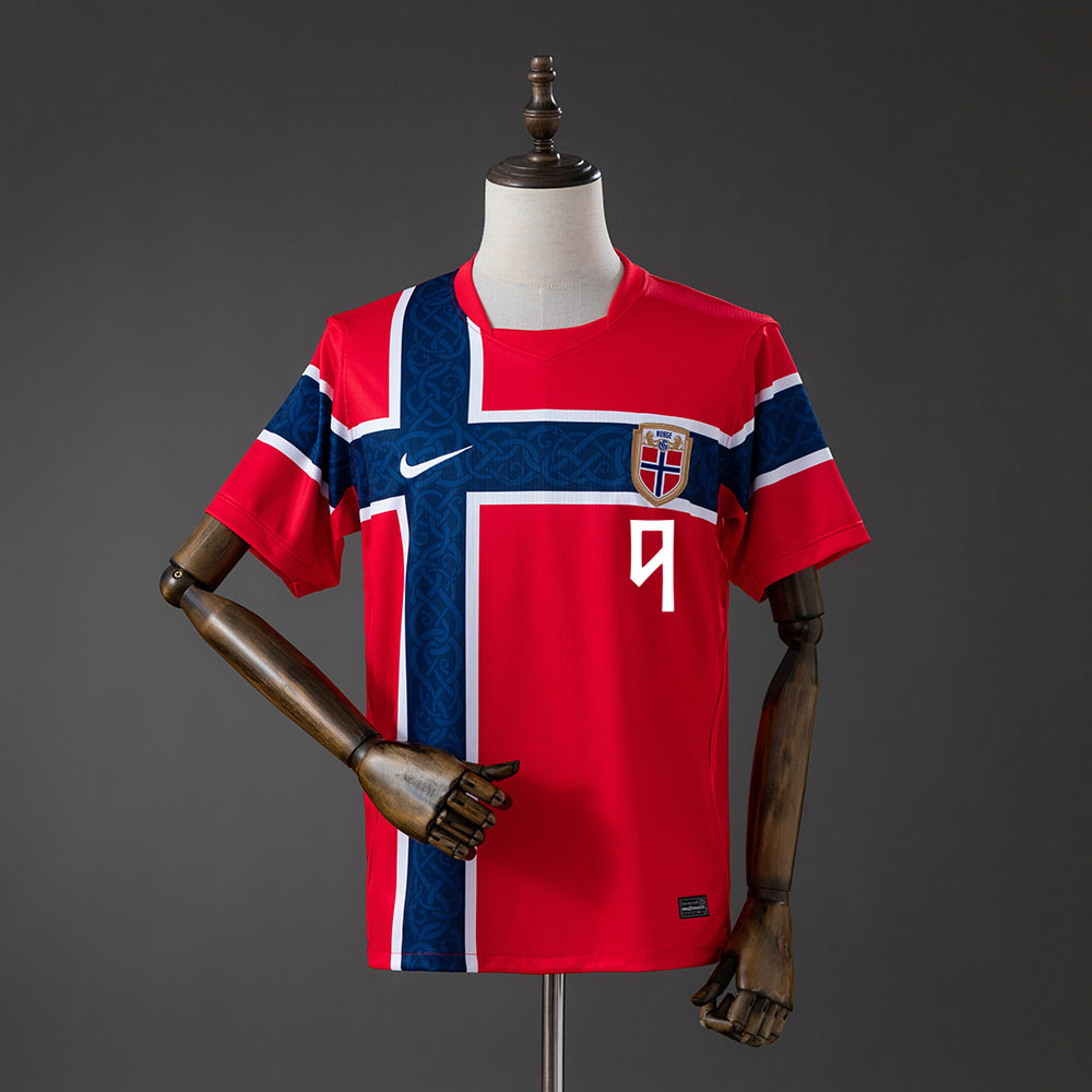 Med Haaland 9 trykket på ryggen får drakten et ekstra lag av nåtidens stolthet. Kombinasjonen av historisk inspirasjon og Norges største stjernespiller gjør denne versjonen spesielt populær blant supportere.