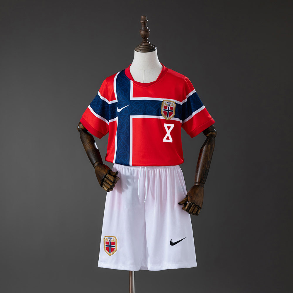 Gjør den lille supporteren klar for mesterskapet med det offisielle Norge-hjemmesettet for VM 2026! Dette komplette settet består av den ikoniske røde landslagstrøya og hvit shorts, ferdig trykket med navnet og nummeret til midtbanestjernen Sander Berge (8). Med sitt moderne design inspirert av norsk natur og kultur, er dette den perfekte gaven til barn som drømmer om å representere landslaget. La barna vise sin stolthet for Løvene med samme stil som sine helter på banen.