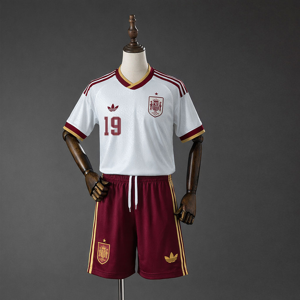 Spania VM 2026 bortedrakt barn med Lamine Yamal 19 er en av de mest unike og populære fotballdrakt barn VM 2026 før mesterskapet. Denne drakten kombinerer stil, kultur og moderne fotballdesign – perfekt for unge supportere.