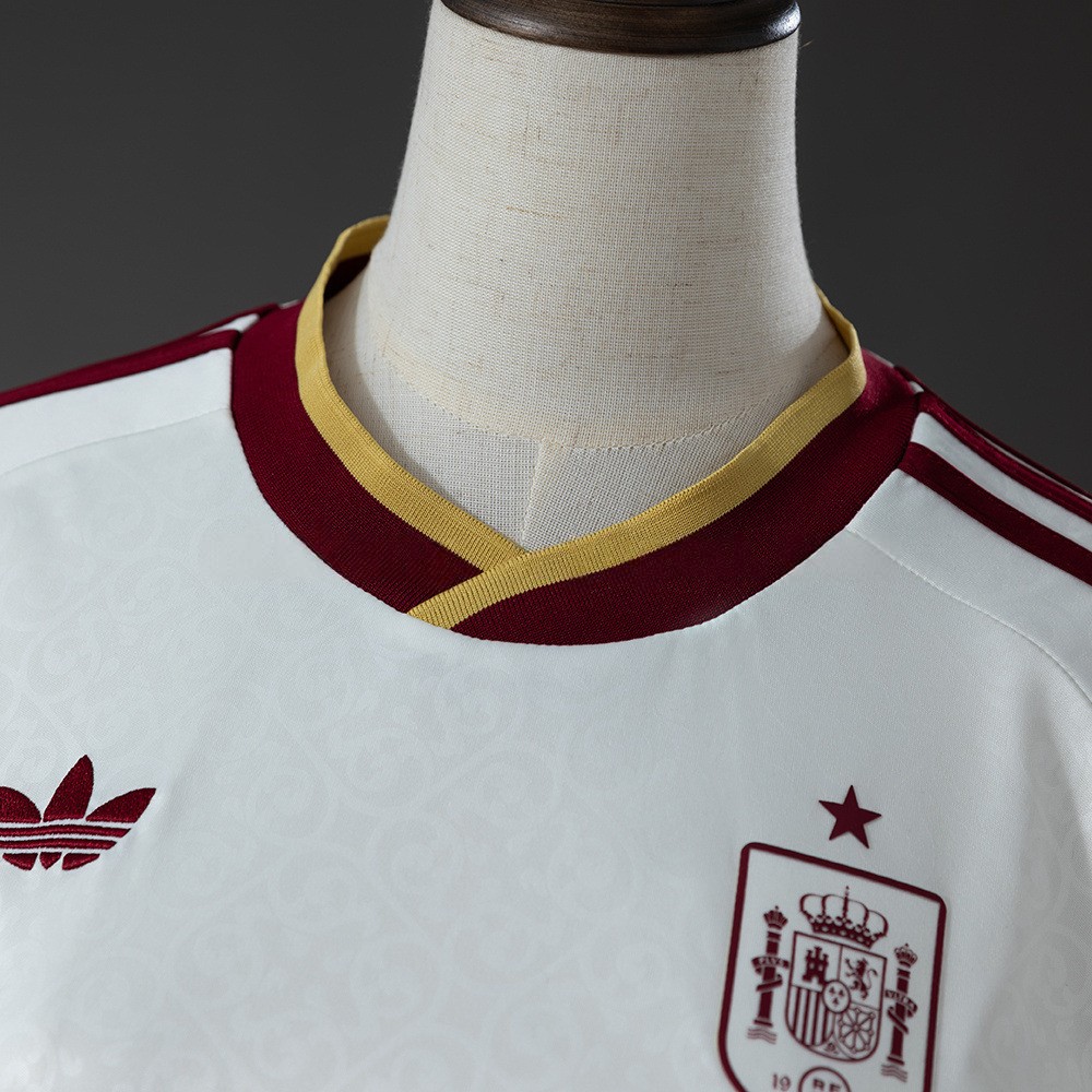 Spania 2026 bortedrakt for dame kombinerer fotball og kultur i et elegant design. Denne drakten skiller seg ut med sitt stilrene uttrykk og er perfekt for supportere som ønsker noe annerledes.