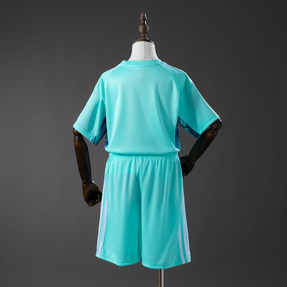 Denne keeperdrakten for barn til VM 2026 kommer i en frisk mintgrønn farge som skiller seg tydelig ut på banen. Settet består av trøye og shorts i matchende tone, laget i lett og pustende materiale som gir god komfort under både trening og lek.