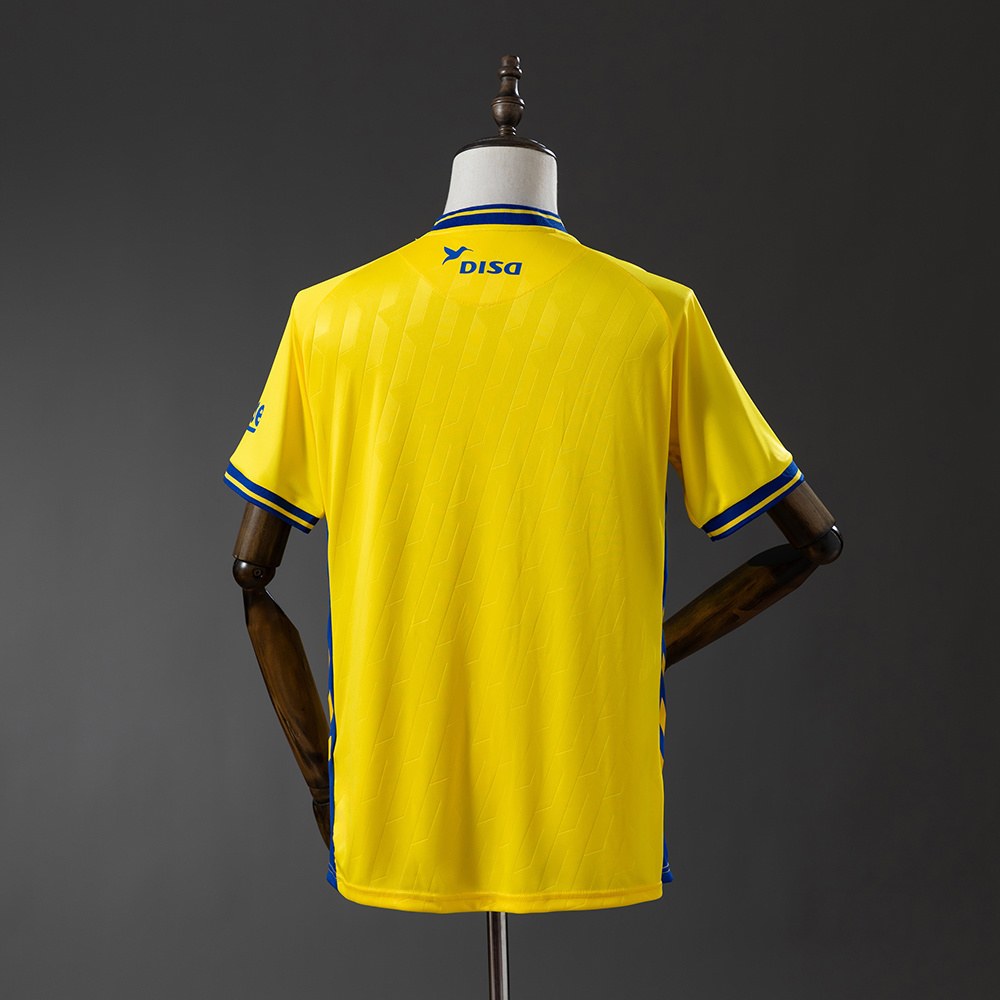 Las Palmas 2025/26 hjemmedrakt har et rent og ryddig uttrykk, med klubbens klassiske farger i fokus. Den klare gule basen kombineres med blå detaljer som gir drakten et friskt og sommerlig preg, tro mot Las Palmas’ identitet.
